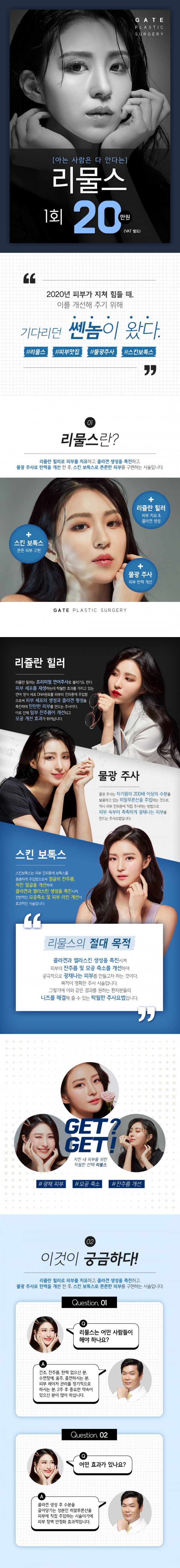 날 위한 리물스 글쓴이 게이트성형외과 작성일 20-08-19 14:48 분류 조회수 142 본문 2020일년 내내 지친 내 피부를 위한 게이트의 특급 처방!!!타고난 피부는 없다.오로지 가꾸어야만 할 뿐이다.이벤트 바로 가기 목록